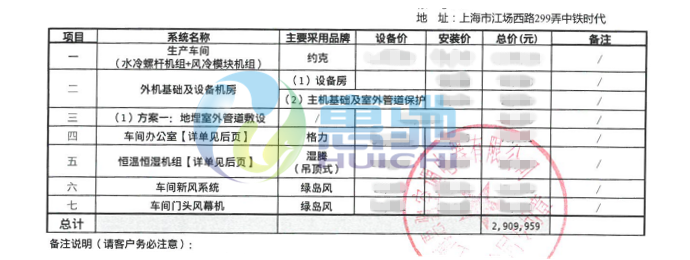車間舒適節(jié)能系統(tǒng)配置表