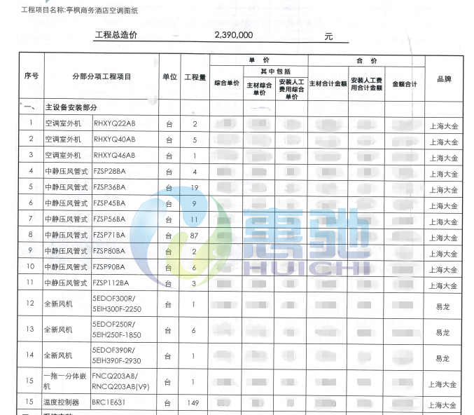 項目內容:大金VRVD系列中央空調    易龍第五代全新風變頻空調機    酒店排風系統改造安裝