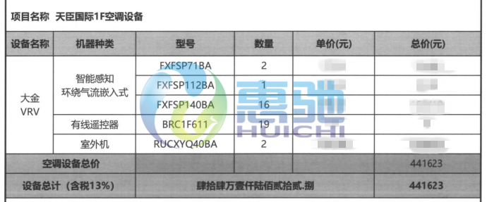項目內容:大金空調 SkyAir Multi系列 VRV-D VRV-X7系列中央空調 VRV X新風處理機全新風集控系統安裝項目