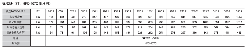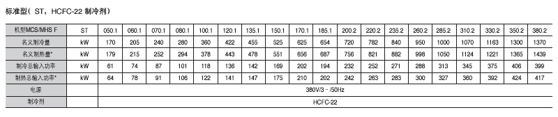 ̖MCS050.1 F~MCS380.2 F MHS050.1 F~MHS380.2 F 170~1370kW Ɵ179~1439kW 䄩HCFC-22 HFC-407C