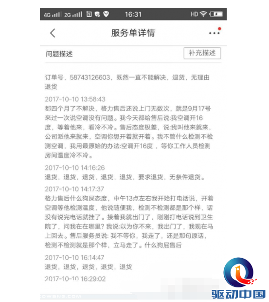 從市場來看,這已不是格力空調第一次被推上輿論的風口浪尖。在此之前,格力空調就因質量問題被媒體曝光。10月23日,據“驅動中國”媒體報道,有消費者通過投訴平臺表示,6月份購買的格力空調1.5匹竟然不制冷,連續打了售后電話三個月之后才登門檢測,但檢測之后非但沒有進行相應的退換貨,售后服務人員還態度不好。