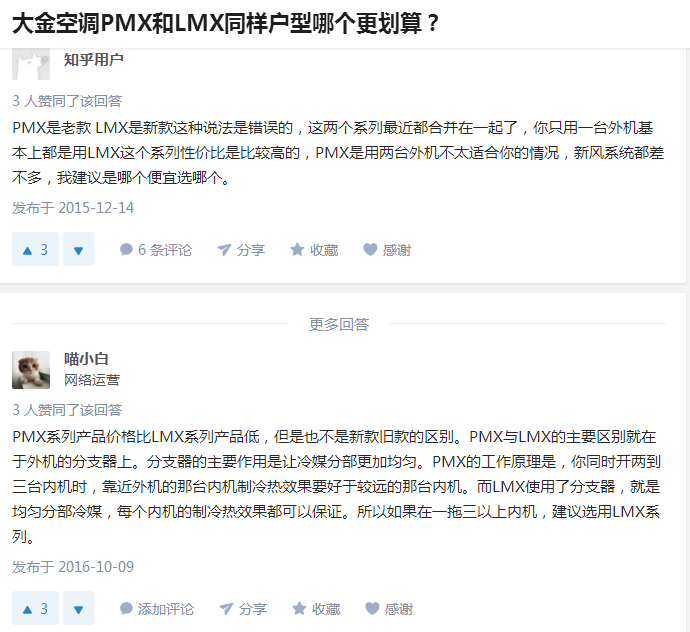 大金LMX系列特點:小巧型室外機,具有兩房兩廳、三房兩廳、四房兩廳三種套餐形式,靈活對應105㎡~200㎡不同房型的空調需求。用戶的評論才是最真實的,看空調行內人如何評價?