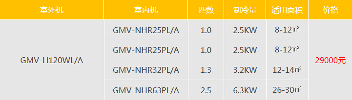 格力家用中央空調GMV STAR系列5匹GMV-H120WL/A一拖四適用98㎡